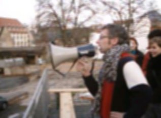 Um 16:00 Uhr wurde die "Utopie des Tages" von Künstlern des Theaterhauses verkündet. Sie lautete heute: