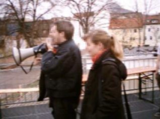 Um 16:00 verkündeten die Künstler des Theaterhauses Jena die Utopie des Tages: